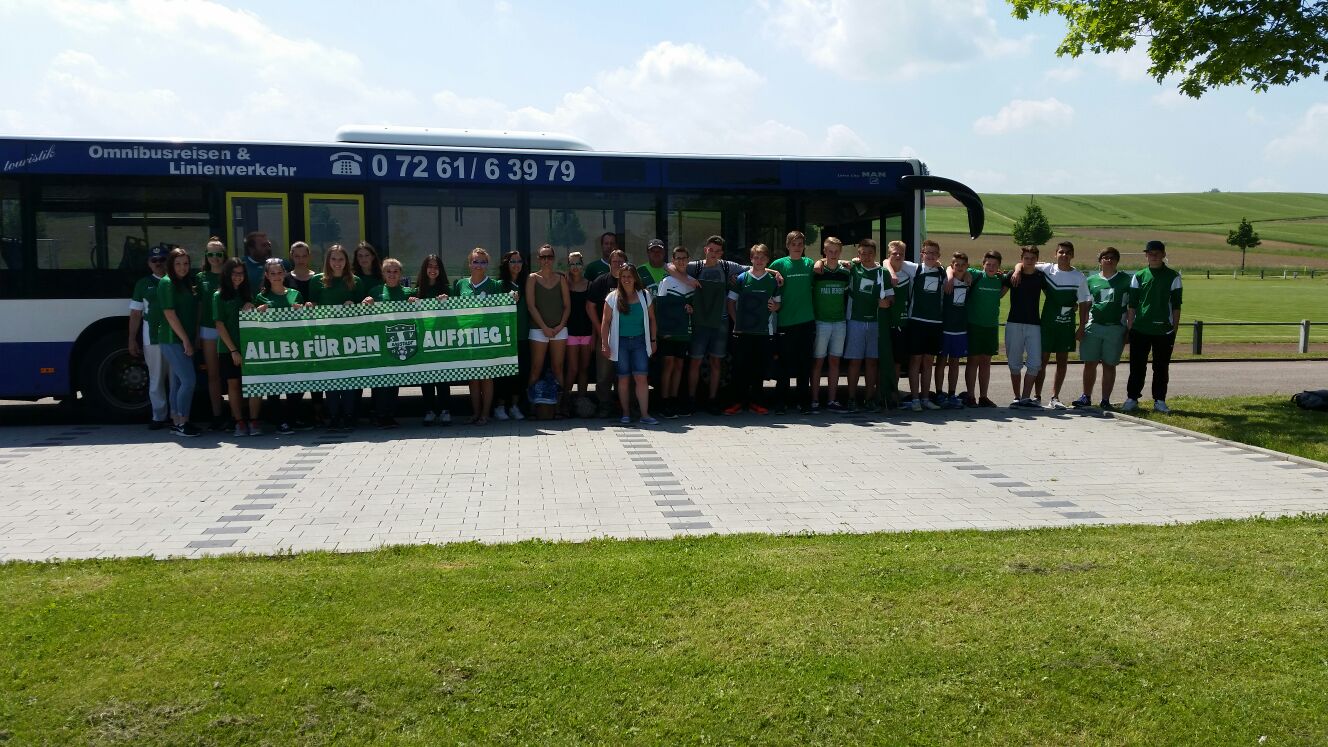 Unsere Jugend unterwegs mit dem Fanbus, der von dem Busunternehmen Hacker Touristik zur Verfügung gestellt wurde, um die ersten Mannschaft bei der Mission Meister zu unterstützen.